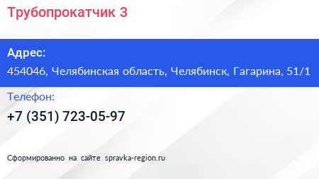 Трубопрокатчик-3 по адресу 454046, Челябинская область, Челябинск, Гагарина, 51/1 в дальнейшем Организация, размещена в следующих категориях: