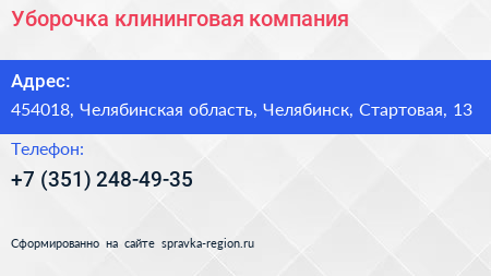 Уборочка, клининговая компания по адресу 454018, Челябинская область, Челябинск, Стартовая, 13 в дальнейшем Организация, размещена в следующих категориях: