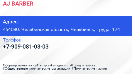 AJ BARBER по адресу 454080, Челябинская область, Челябинск, Труда, 174 в дальнейшем Организация, размещена в следующих категориях: