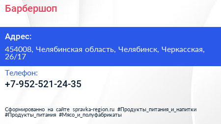 Барбершоп по адресу 454008, Челябинская область, Челябинск, Черкасская, 26/17 в дальнейшем Организация, размещена в следующих категориях: