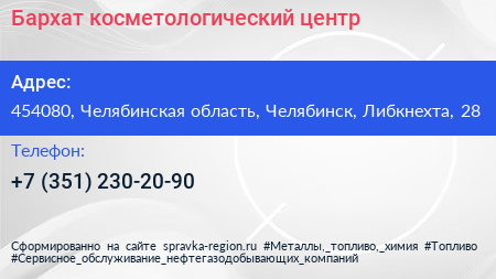 Бархат, косметологический центр по адресу 454080, Челябинская область, Челябинск, Либкнехта, 28 в дальнейшем Организация, размещена в следующих категориях: