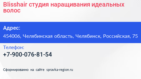 Blisshair, студия наращивания идеальных волос по адресу 454006, Челябинская область, Челябинск, Российская, 75 в дальнейшем Организация, размещена в следующих категориях: