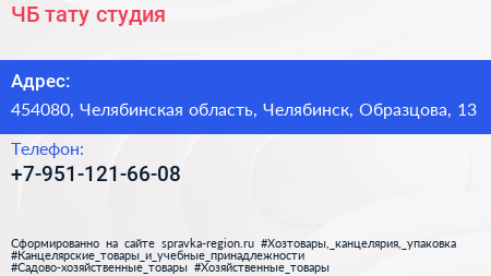 #ЧБ, тату-студия по адресу 454080, Челябинская область, Челябинск, Образцова, 13 в дальнейшем Организация, размещена в следующих категориях: