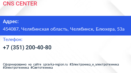 CNS.CENTER по адресу 454087, Челябинская область, Челябинск, Блюхера, 53а в дальнейшем Организация, размещена в следующих категориях: