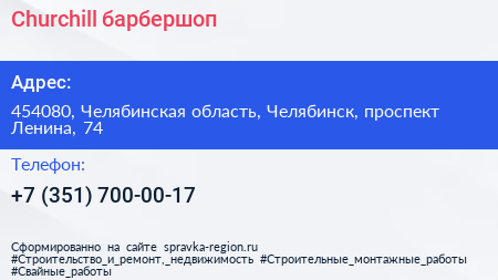 Churchill, барбершоп по адресу 454080, Челябинская область, Челябинск, проспект Ленина, 74 в дальнейшем Организация, размещена в следующих категориях: