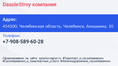 DasoleStroy, компания по адресу 454100, Челябинская область, Челябинск, Аношкина, 10 в дальнейшем Организация, размещена в следующих категориях: