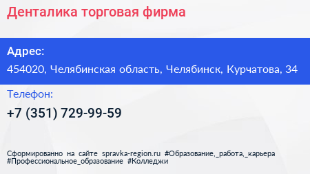 Денталика, торговая фирма по адресу 454020, Челябинская область, Челябинск, Курчатова, 34 в дальнейшем Организация, размещена в следующих категориях: