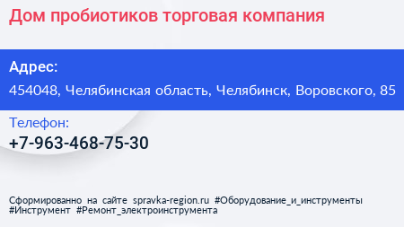Дом пробиотиков, торговая компания по адресу 454048, Челябинская область, Челябинск, Воровского, 85 в дальнейшем Организация, размещена в следующих категориях: