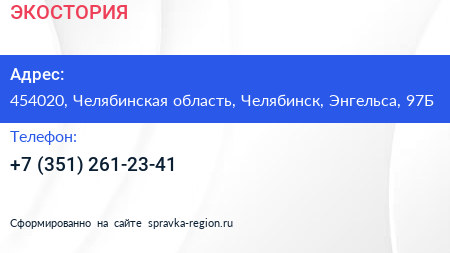 ЭКОСТОРИЯ по адресу 454020, Челябинская область, Челябинск, Энгельса, 97Б в дальнейшем Организация, размещена в следующих категориях: