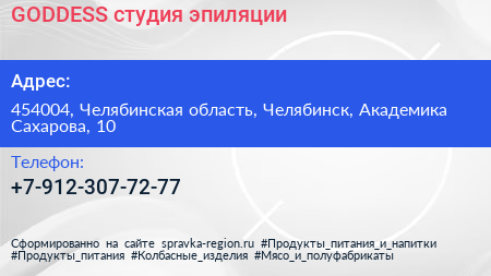 GODDESS, студия эпиляции по адресу 454004, Челябинская область, Челябинск, Академика Сахарова, 10 в дальнейшем Организация, размещена в следующих категориях: