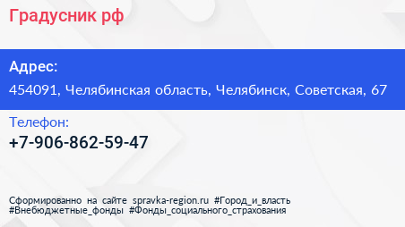 Градусник рф по адресу 454091, Челябинская область, Челябинск, Советская, 67 в дальнейшем Организация, размещена в следующих категориях: