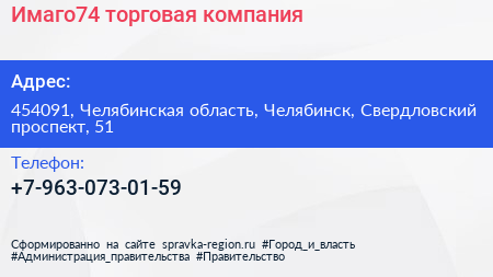 Имаго74, торговая компания по адресу 454091, Челябинская область, Челябинск, Свердловский проспект, 51 в дальнейшем Организация, размещена в следующих категориях: