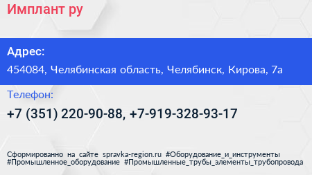 Имплант.ру по адресу 454084, Челябинская область, Челябинск, Кирова, 7а в дальнейшем Организация, размещена в следующих категориях: