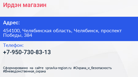 Ирдэн, магазин по адресу 454100, Челябинская область, Челябинск, проспект Победы, 384 в дальнейшем Организация, размещена в следующих категориях: