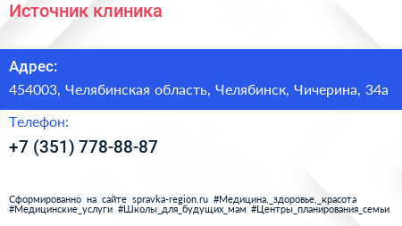 Источник, клиника по адресу 454003, Челябинская область, Челябинск, Чичерина, 34а в дальнейшем Организация, размещена в следующих категориях: