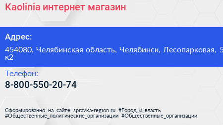 Kaolinia, интернет-магазин по адресу 454080, Челябинская область, Челябинск, Лесопарковая, 5 к2 в дальнейшем Организация, размещена в следующих категориях: