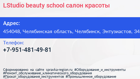 LStudio beauty. school, салон красоты по адресу 454048, Челябинская область, Челябинск, Энтузиастов, 34 в дальнейшем Организация, размещена в следующих категориях: