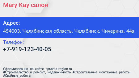 Mary Kay, салон по адресу 454003, Челябинская область, Челябинск, Чичерина, 44а в дальнейшем Организация, размещена в следующих категориях: