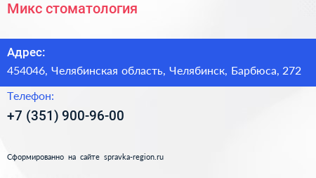 Микс, стоматология по адресу 454046, Челябинская область, Челябинск, Барбюса, 272 в дальнейшем Организация, размещена в следующих категориях: