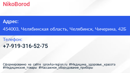 NikoBorod по адресу 454003, Челябинская область, Челябинск, Чичерина, 42Б в дальнейшем Организация, размещена в следующих категориях:
