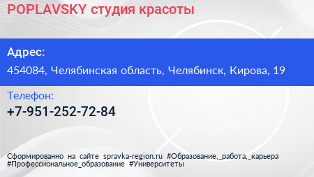#POPLAVSKY, студия красоты по адресу 454084, Челябинская область, Челябинск, Кирова, 19 в дальнейшем Организация, размещена в следующих категориях: