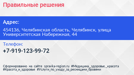 Правильные решения по адресу 454136, Челябинская область, Челябинск, улица Университетская Набережная, 44 в дальнейшем Организация, размещена в следующих категориях: