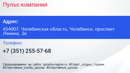 Пульс, компания по адресу 454007, Челябинская область, Челябинск, проспект Ленина, 2к в дальнейшем Организация, размещена в следующих категориях: