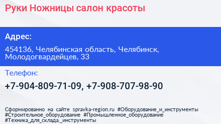 Руки & Ножницы, салон красоты по адресу 454136, Челябинская область, Челябинск, Молодогвардейцев, 33 в дальнейшем Организация, размещена в следующих категориях:
