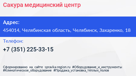 Сакура, медицинский центр по адресу 454014, Челябинская область, Челябинск, Захаренко, 18 в дальнейшем Организация, размещена в следующих категориях: