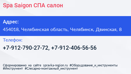 Spa Saigon, СПА-салон по адресу 454018, Челябинская область, Челябинск, Двинская, 8 в дальнейшем Организация, размещена в следующих категориях: