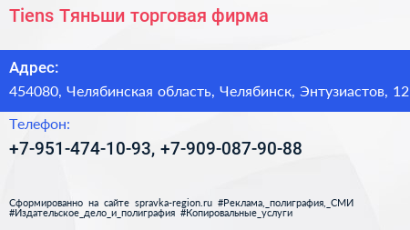 Tiens Тяньши, торговая фирма по адресу 454080, Челябинская область, Челябинск, Энтузиастов, 12 в дальнейшем Организация, размещена в следующих категориях: