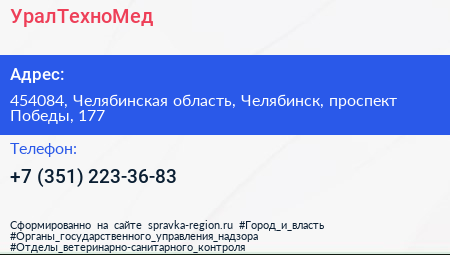 УралТехноМед по адресу 454084, Челябинская область, Челябинск, проспект Победы, 177 в дальнейшем Организация, размещена в следующих категориях: