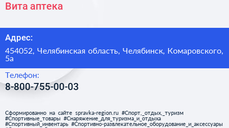 Вита, аптека по адресу 454052, Челябинская область, Челябинск, Комаровского, 5а в дальнейшем Организация, размещена в следующих категориях: