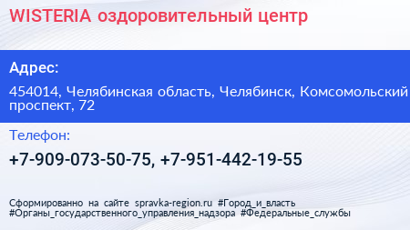 WISTERIA, оздоровительный центр по адресу 454014, Челябинская область, Челябинск, Комсомольский проспект, 72 в дальнейшем Организация, размещена в следующих категориях: