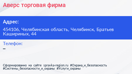 Аверс, торговая фирма по адресу 454106, Челябинская область, Челябинск, Братьев Кашириных, 44 в дальнейшем Организация, размещена в следующих категориях: