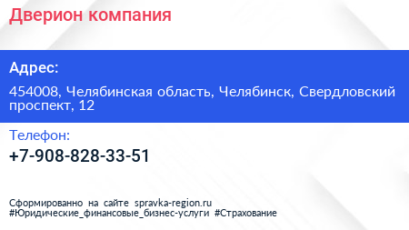 Дверион, компания по адресу 454008, Челябинская область, Челябинск, Свердловский проспект, 12 в дальнейшем Организация, размещена в следующих категориях: