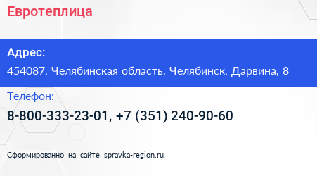 Для связи с организацией воспользуйтесь номером телефона: 8-800-333-23-01, +7 (351) 240-90-60. Пн: c 09:00-21:00, Вт: c 09:00-21:00, Ср: c 09:00-21:00, Чт: c 09:00-21:00, Пт: c 09:00-21:00, Сб: c 09:00-18:00, Вс: c 09:00-18:00, вы можете обратиться в эту организацию.