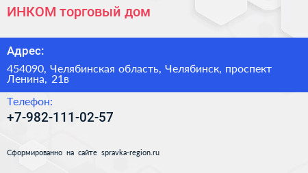 ИНКОМ, торговый дом по адресу 454090, Челябинская область, Челябинск, проспект Ленина, 21в в дальнейшем Организация, размещена в следующих категориях: