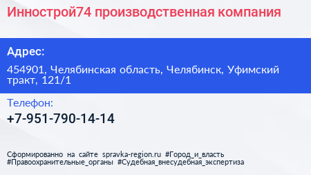 Иннострой74, производственная компания по адресу 454901, Челябинская область, Челябинск, Уфимский тракт, 121/1 в дальнейшем Организация, размещена в следующих категориях: