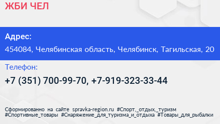 ЖБИ-ЧЕЛ по адресу 454084, Челябинская область, Челябинск, Тагильская, 20 в дальнейшем Организация, размещена в следующих категориях: