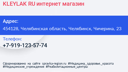KLEYLAK.RU, интернет-магазин по адресу 454128, Челябинская область, Челябинск, Чичерина, 23 в дальнейшем Организация, размещена в следующих категориях: