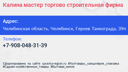 Калина-мастер, торгово-строительная фирма по адресу Челябинская область, Челябинск, Героев Танкограда, 39п в дальнейшем Организация, размещена в следующих категориях: