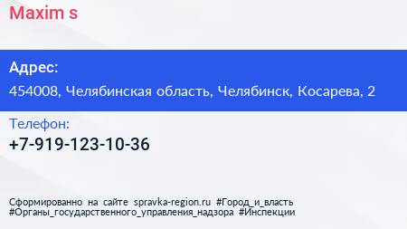 Maxim`s по адресу 454008, Челябинская область, Челябинск, Косарева, 2 в дальнейшем Организация, размещена в следующих категориях: