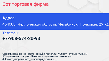 Сот, торговая фирма по адресу 454008, Челябинская область, Челябинск, Полковая, 29 к1 в дальнейшем Организация, размещена в следующих категориях: