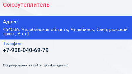 Союзутеплитель по адресу 454036, Челябинская область, Челябинск, Свердловский тракт, 6 ст1 в дальнейшем Организация, размещена в следующих категориях: