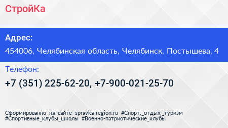 СтройКа по адресу 454006, Челябинская область, Челябинск, Постышева, 4 в дальнейшем Организация, размещена в следующих категориях: