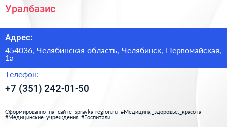 Уралбазис по адресу 454036, Челябинская область, Челябинск, Первомайская, 1а в дальнейшем Организация, размещена в следующих категориях: