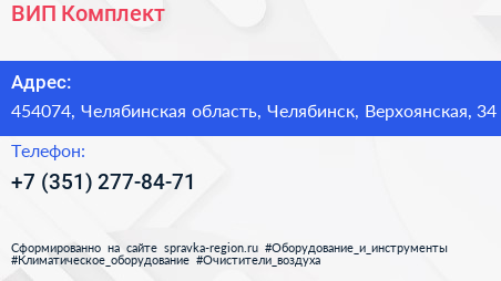 ВИП-Комплект по адресу 454074, Челябинская область, Челябинск, Верхоянская, 34 в дальнейшем Организация, размещена в следующих категориях:
