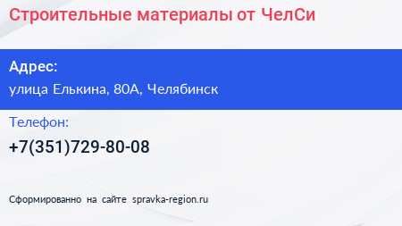 Строительные материалы от ЧелСи по адресу улица Елькина, 80А, Челябинск в дальнейшем Организация, размещена в следующих категориях: