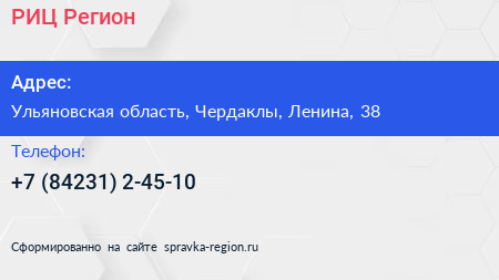 РИЦ-Регион по адресу Ульяновская область, Чердаклы, Ленина, 38 в дальнейшем Организация, размещена в следующих категориях: